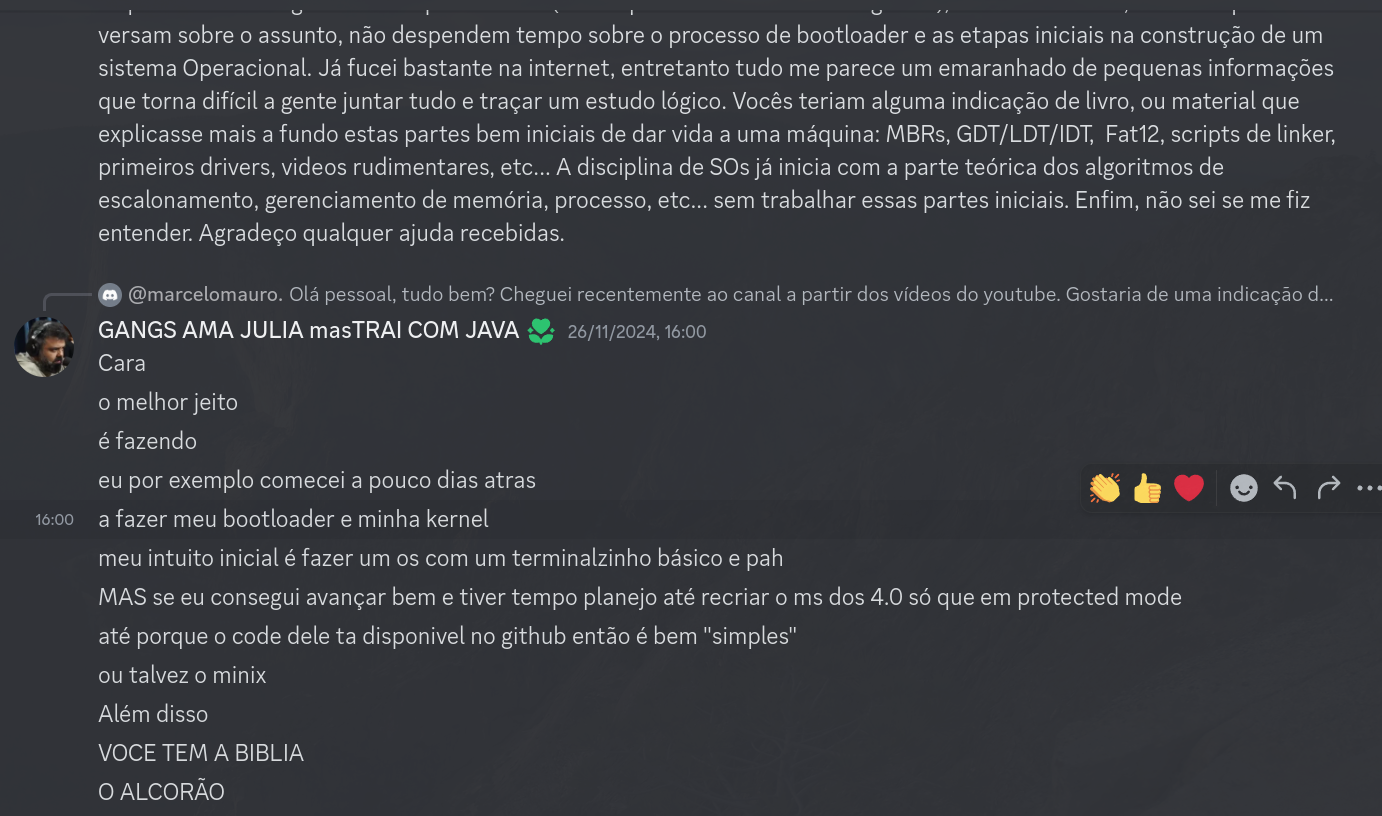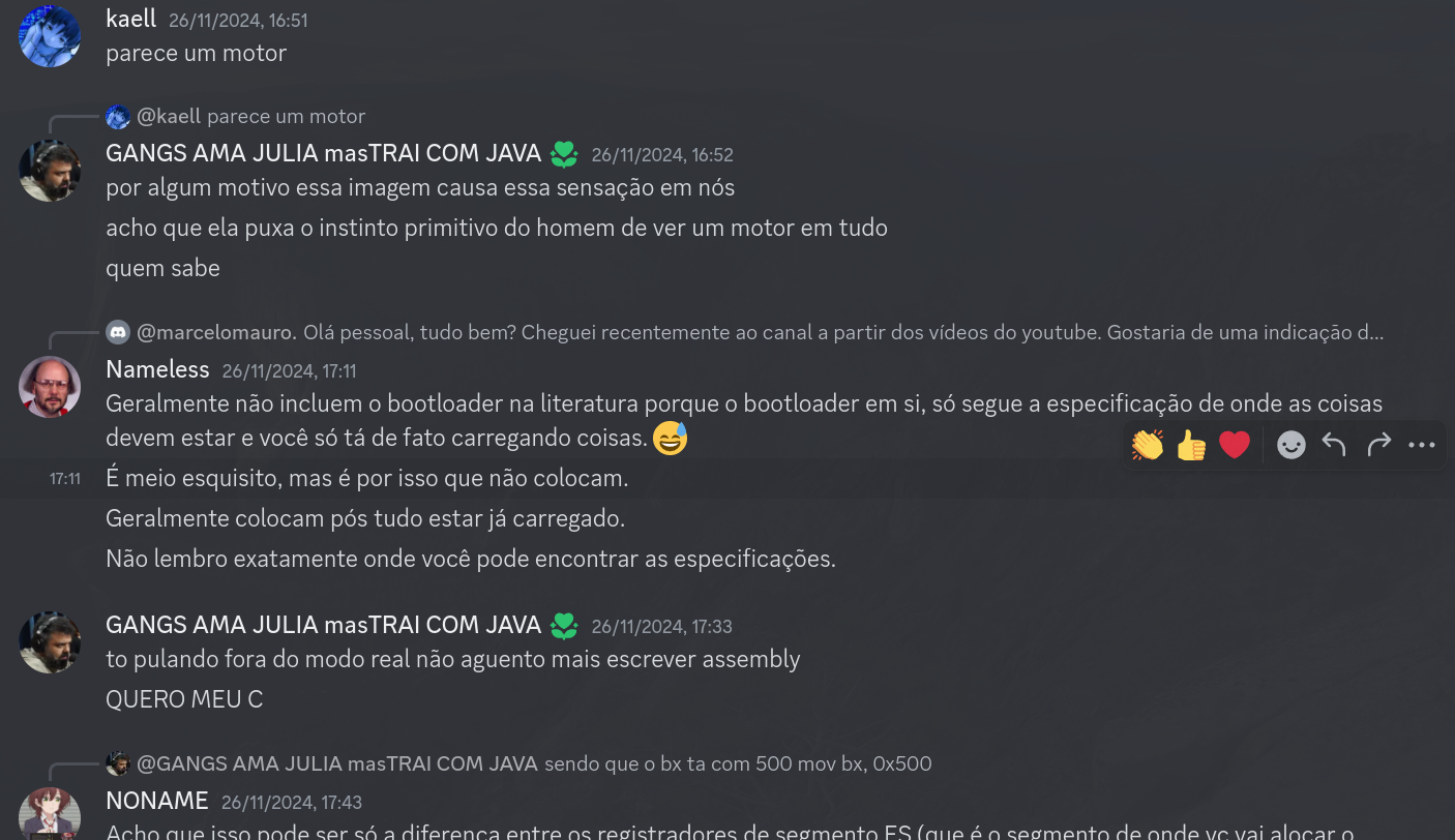 Aprender a ligar um computador é uma atividade muito interessante para entender mais de baixo nível. Pra isso, fazer um bootloader costuma ser o Hello World pra quem entra em sistemas operacionais.